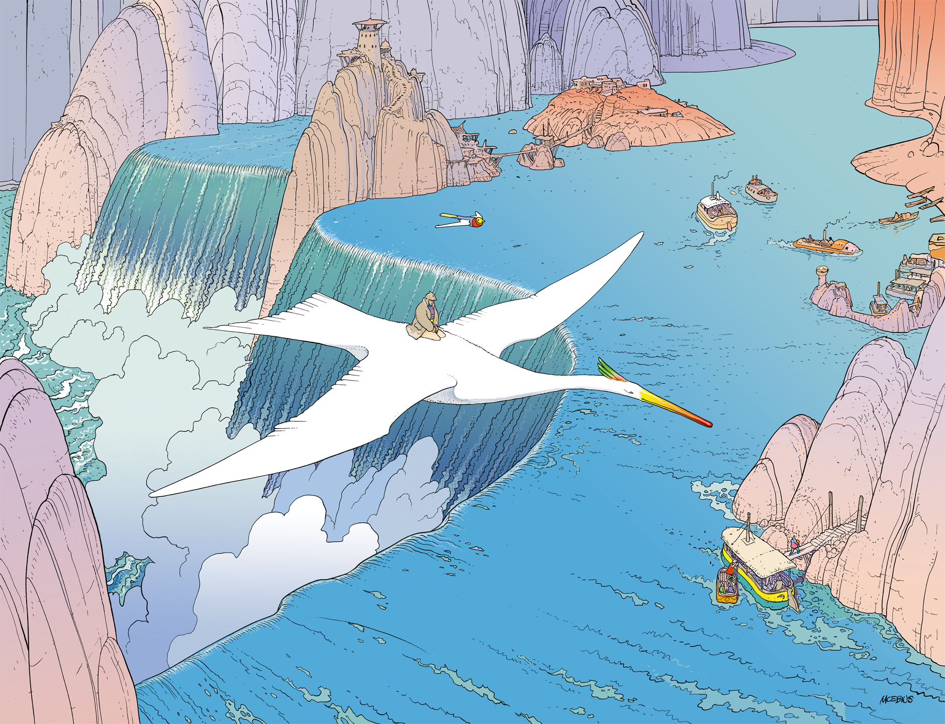A brief passage on the photo-blog to mark the morning’s discovery: Moebius’ series for Hermès.